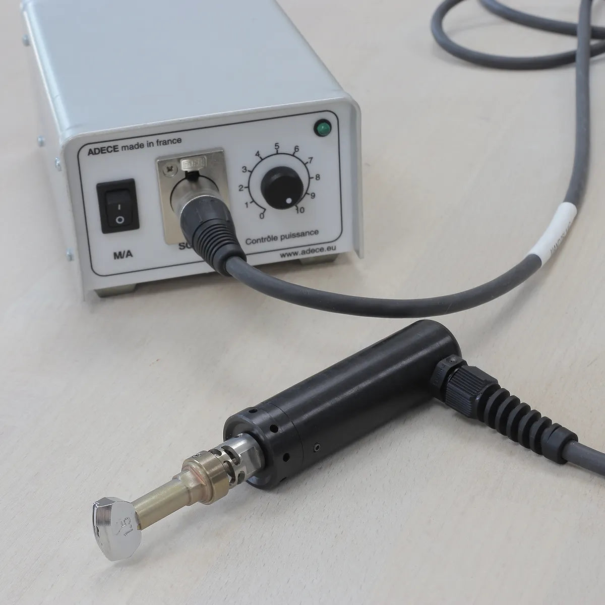 Deco Cuir vous propose ces kits complets FER A FILETER avec le boitier d'alimentation (1, 2 ou 3 voie(s)), un ou plusieurs manche(s) et plusieurs outils chauffants pour réaliser les différentes opérations possibles par marquage à chaud. Sur la face avant du boitier vous pourrez régler électroniquement la température de chaque manche par potentiomètre. Les outils chauffants sont à visser au bout de votre fer (manche). Embouts chauffants pour fer à fileter, réalisation de filet simple ou double, lissage des tranches des pièces de cuir, brûle-fil, marquage à chaud sur tout type de cuir.