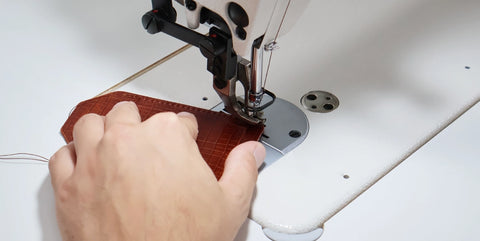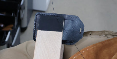 Coudre avec un fil polyester n°40 de 0,36 mm de diamètre. S’aider de pinces pour maintenir les pièces de cuir bien en place pendant la couture.
