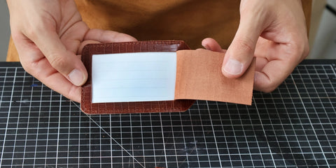 Pour l’étiquette n° 3 vous pouvez insérer un film plastique transparent pour protéger votre étiquette papier entre les 2 couches de cuir