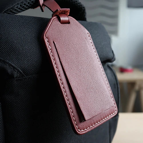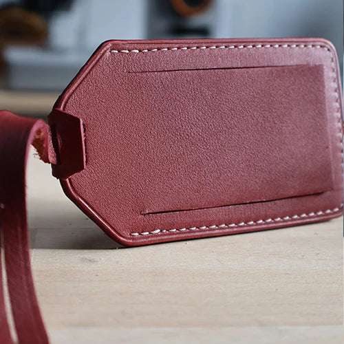 Bravo pour cette étiquette de bagage en cuir : unique, robuste et entièrement personnalisable. Parfaite pour identifier facilement vos affaires avec style !