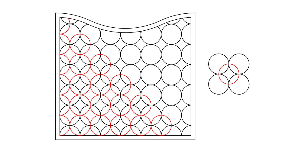 Tracer ensuite des cercles entiers, de même diamètre, comme sur le schéma ci-dessous. Continuer de la même manière jusqu’en haut de la pièce.