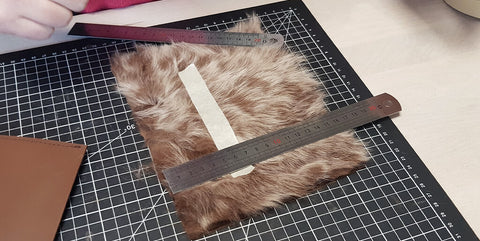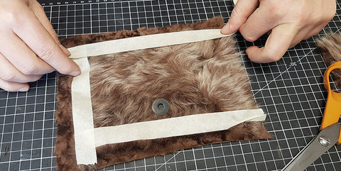 Mettre du ruban de masquage à l’endroit prévu sur le patron pour la ligne de couture du rabat. Le ruban va permettre de faciliter la couture sur les poils.