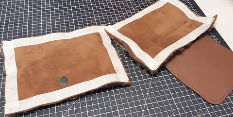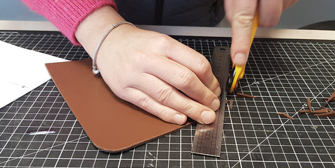 Découper la pièce P2 sur ce morceau de cuir contrecollé. Découper les arrondis en quartiers.