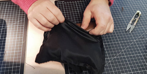 Laisser une ouverture de 8 cm sur la deuxième longueur pour pouvoir retourner la pochette à la fin.