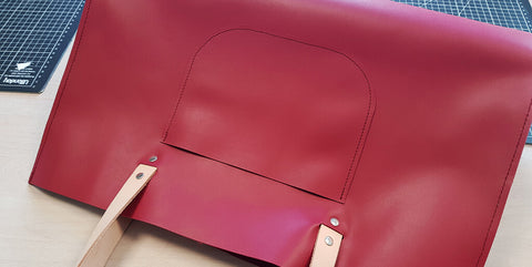 Avec du double-face, coller la pièce P3 (poche) sur P1, à l’emplacement prévu sur le patron.