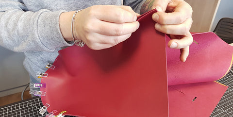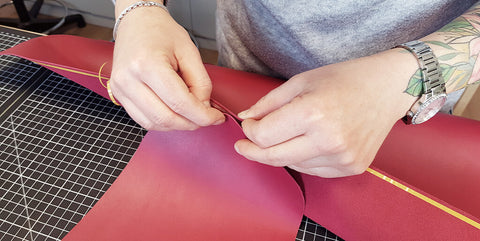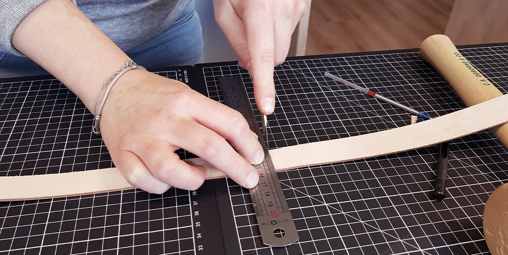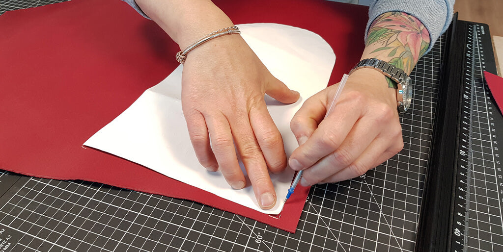 Télécharger le patron et l'imprimer en taille réelle. Découper le patron papier et le reporter, avec un crayon argent, sur la peau de cuir.
