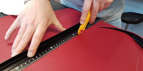Découper les pièces du patron à l’aide d’un cutter ou d’une paire de ciseaux. Marquer les milieux des pièces (indiqués sur le patron) avec une encoche.