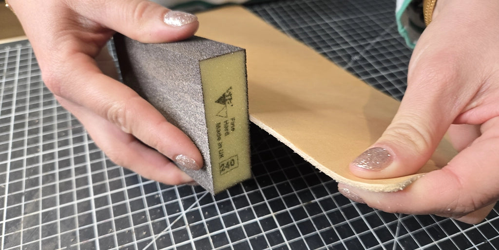 Pour un cuir tannage minéral : travailler les tranches avec une finition de tranche (peinture).