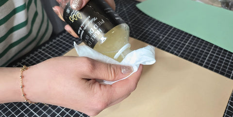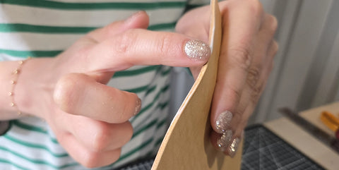 - Appliquer du Tokonole (gomme de finition) sur la tranche et frotter vivement avec un chiffon en coton ou une lissette.