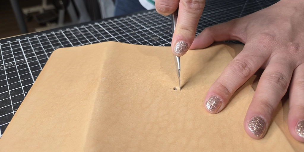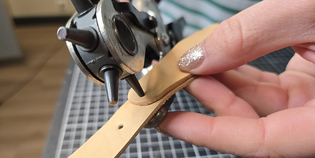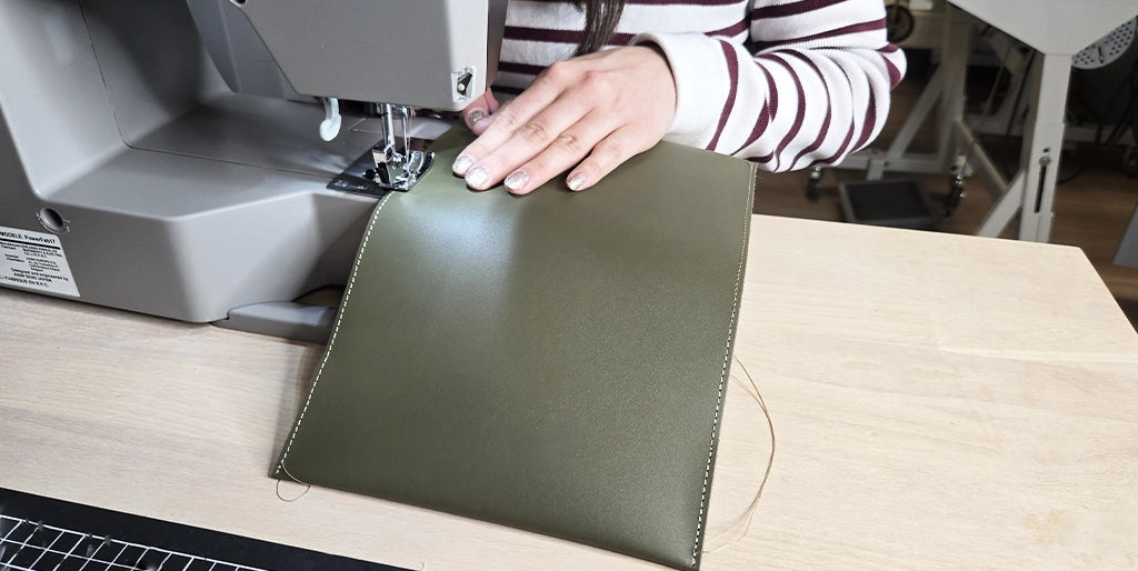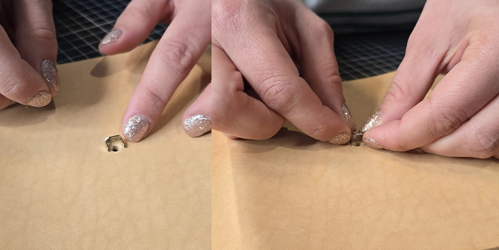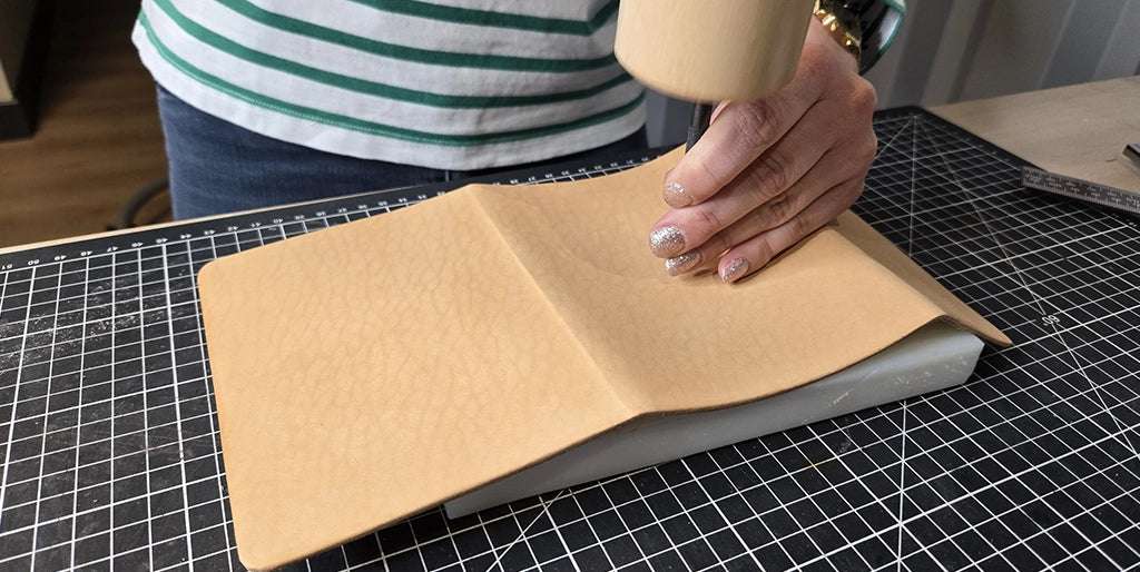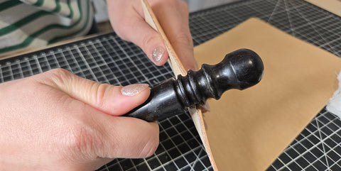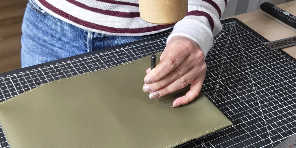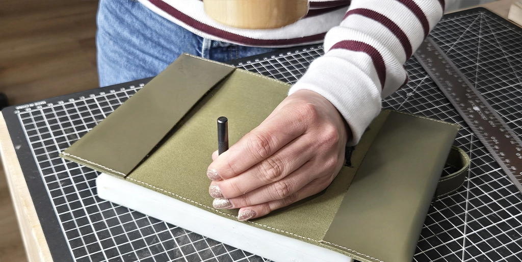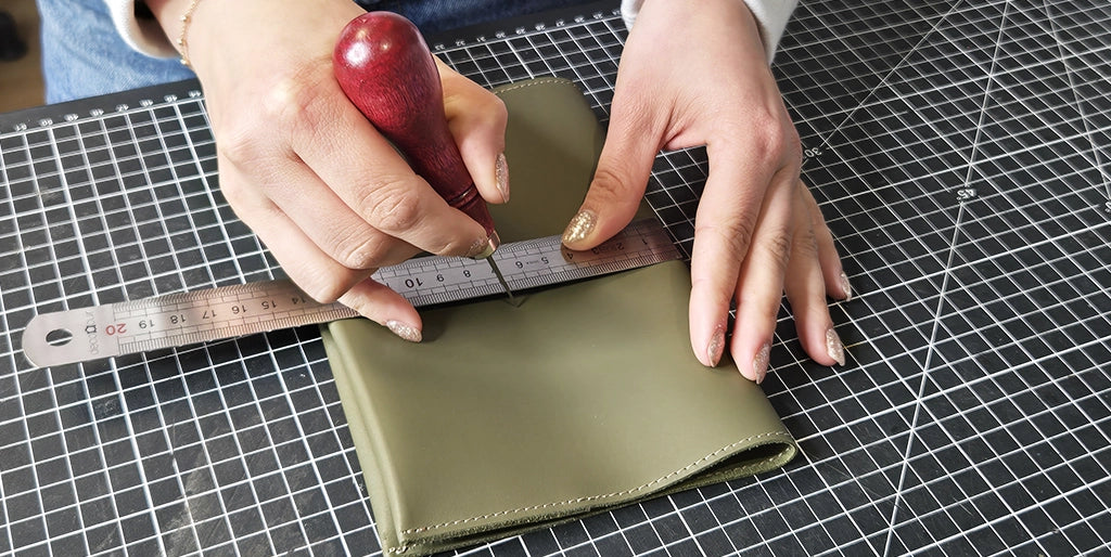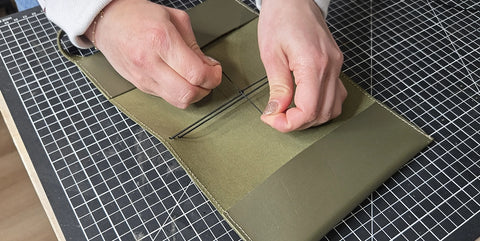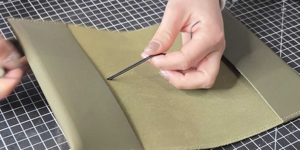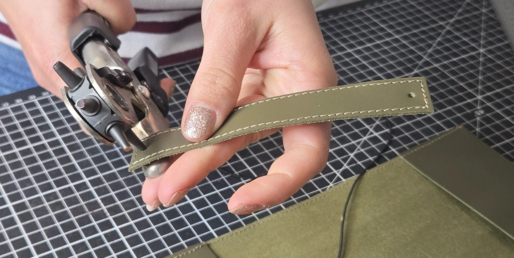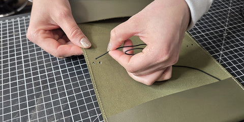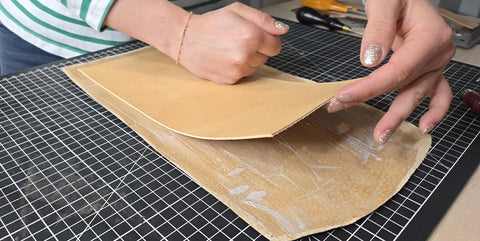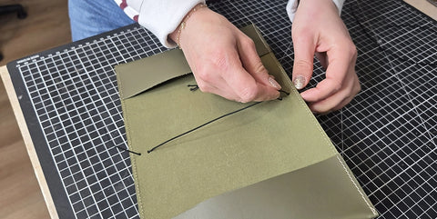 Former le rabat en repliant le cuir sur environ 6 cm de chaque côté.