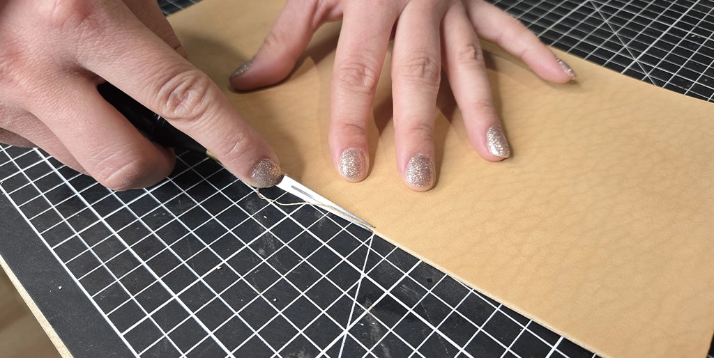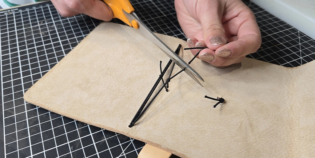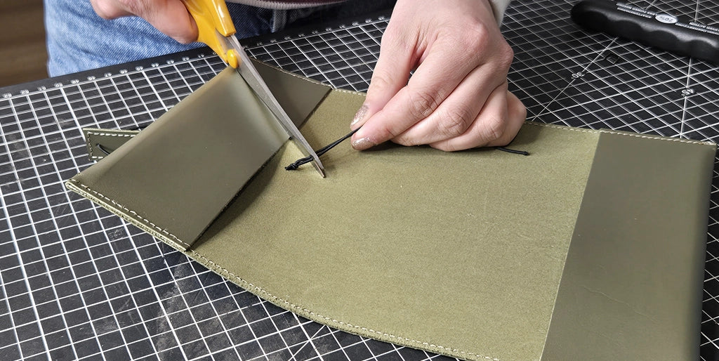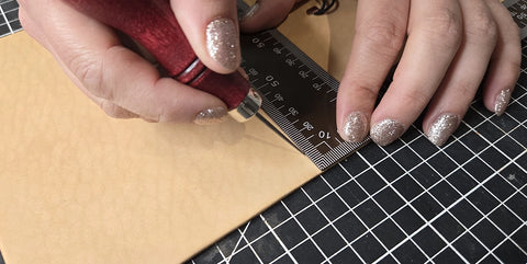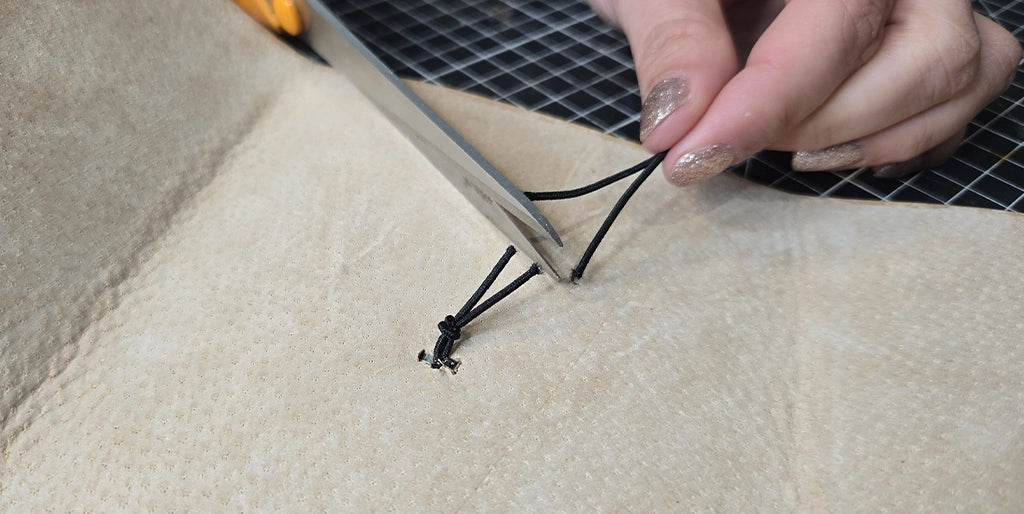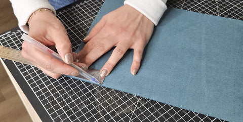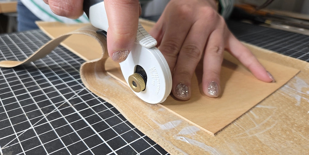 Couper le surplus de cuir de porc velours : couper bord à bord à l'aide d'un cutter rotatif.