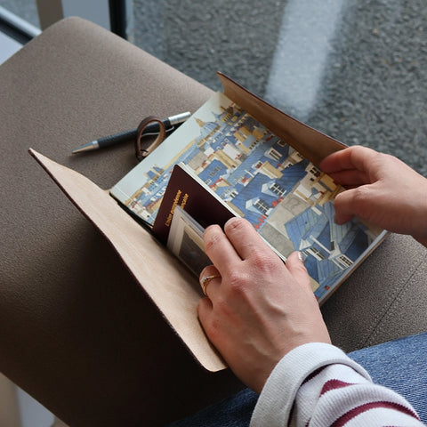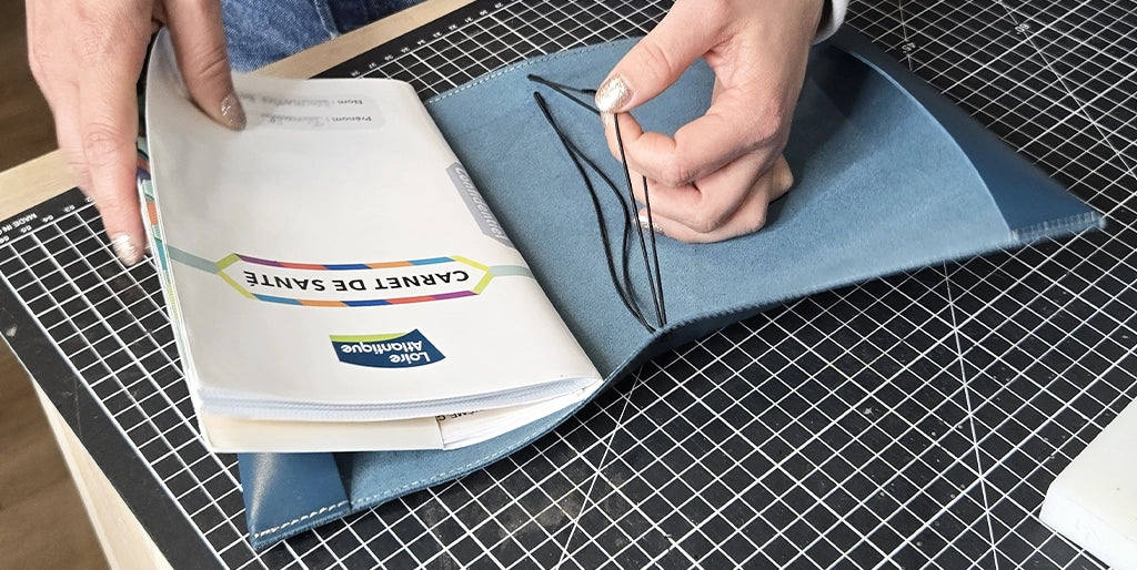 Cette version permet de coincer les couvertures de carnet/livre ou carnet de santé dans les rabats. Cette version est cousue à la main ou à la machine à coudre.