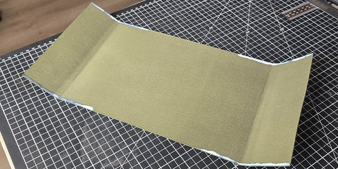 Notre rectangle de cuir fait donc 22,4 cm x 44 cm. Cette version rentre tout juste dans nos morceaux de 30 x 40 cm (il est possible de réduire la dimension des rabats ou de sélectionner une peau d'environ 0,40 m2).