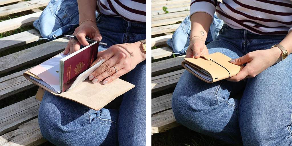 À l'aide des 4 élastiques à l'intérieur vous pouvez glisser plusieurs carnets, un passeport ou même ajouter notre porte-cartes transparent (en vente sur notre site - Réf. ) ! Aussi vous pouvez personnaliser votre cuir avec un marquage ou ajouter un morceau de ruban tricolore.