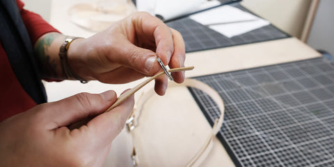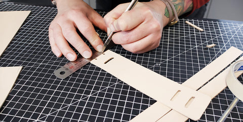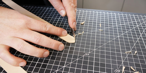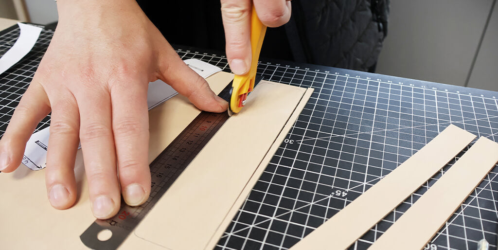 Dans le morceau de cuir de 20 x 30 cm, reportez les pièces P2 et P3. Puis, découpez-les avec un cutter.