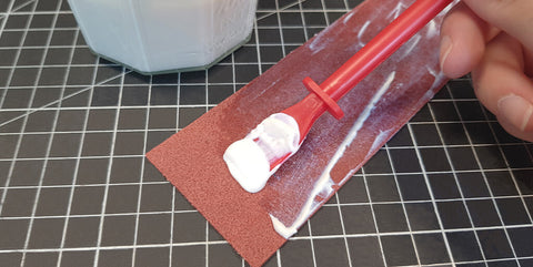 Appliquez du Tokonole sur la tranche du cuir puis frottez avec une lissette ou un chiffon.