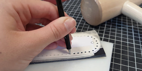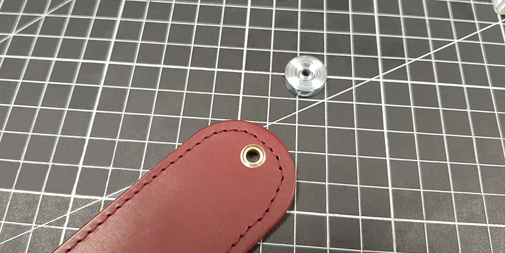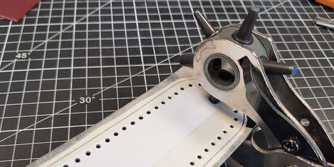 Percez les différents trous : le trou de 4 mm pour l'œillet et les trous de 1 mm pour une couture à la main.