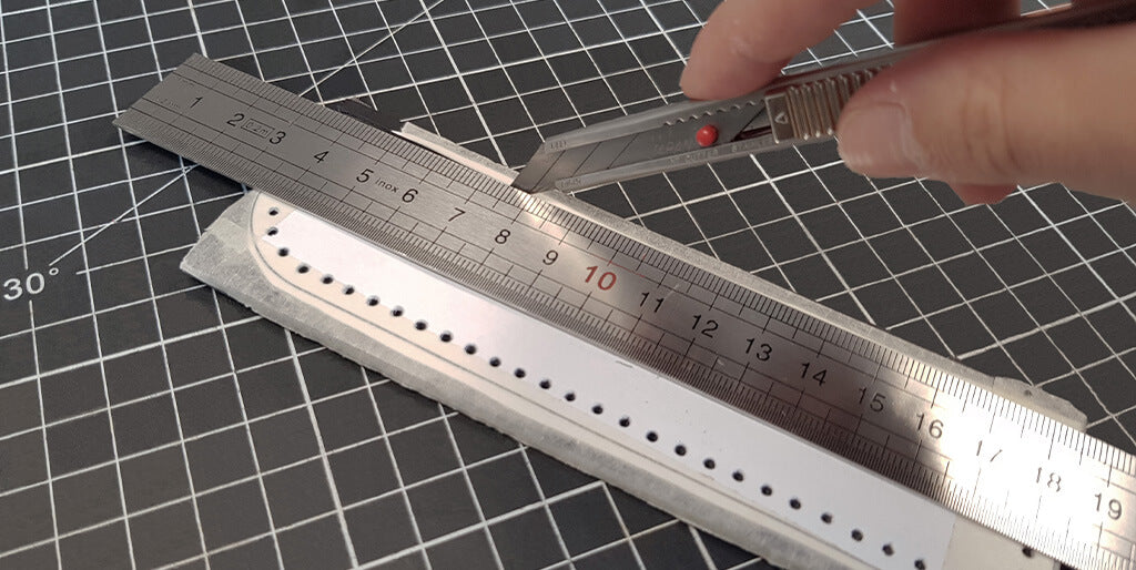 Découpez le cuir avec un cutter en suivant les lignes du patron.
