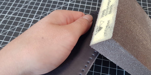 Option : travaillez les tranches de votre pièce de cuir. Poncez les tranches avec une éponge abrasive, puis abat-carrez les tranches de votre cuir.