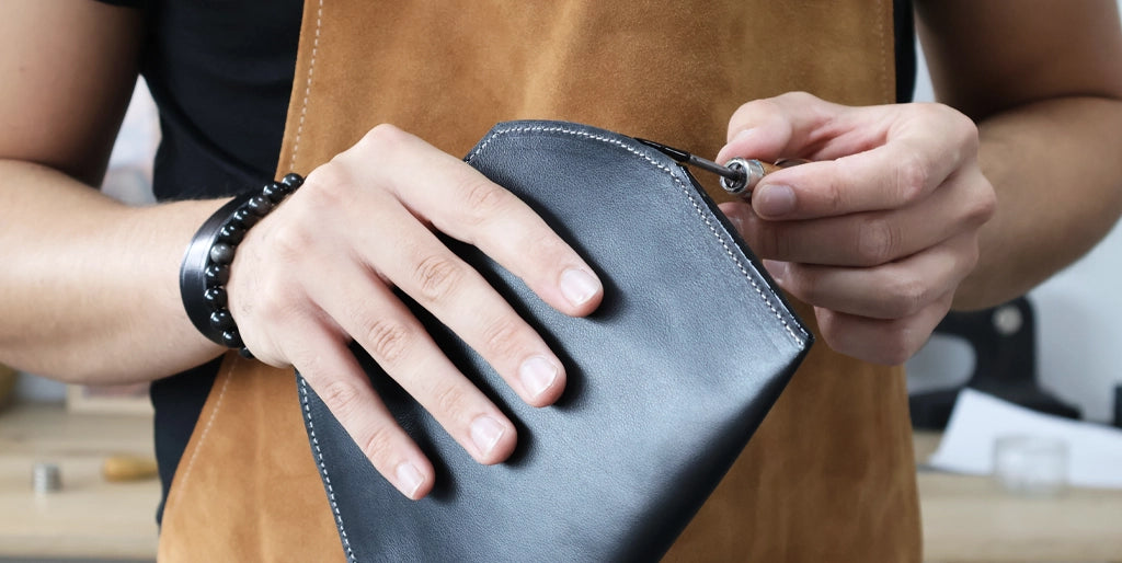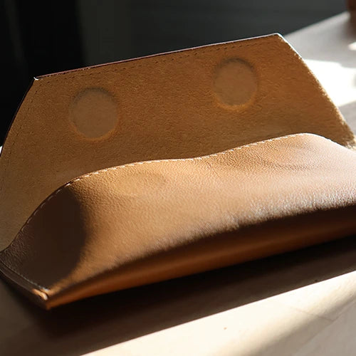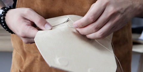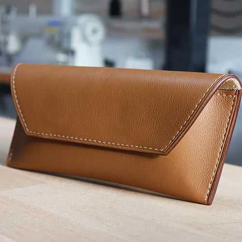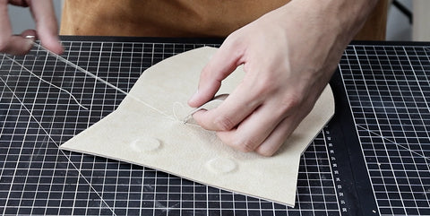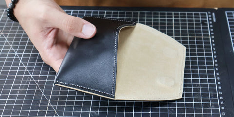 L'étui peut aussi être cousu à la main. Nous conseillons une couture simplifiée pour les débutants ou une couture point sellier pour les plus expérimentés. Attention au moment du collage des bords : sur le patron il y a 14 points de couture sur l'avant de l'étui et 15 sur l'arrière afin de faire un point à cheval (il est donc normal d'avoir un point supplémentaire de visible au moment du collage des bords).