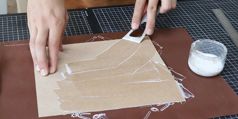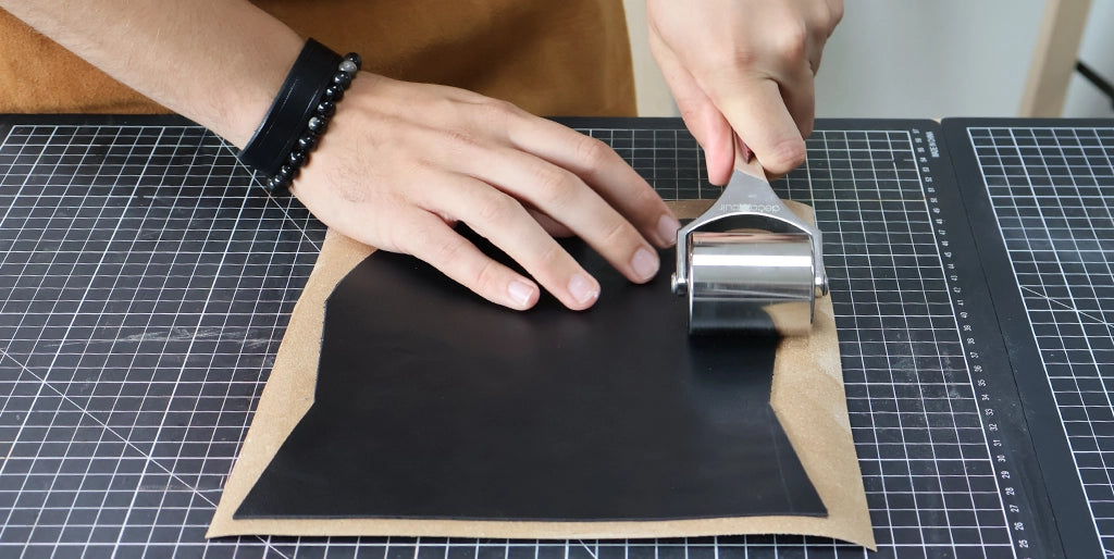 Contrecoller le cuir et le Salpa. Bien aplatir le collage avec un rouleau à presser.