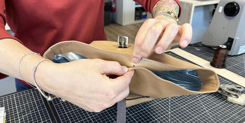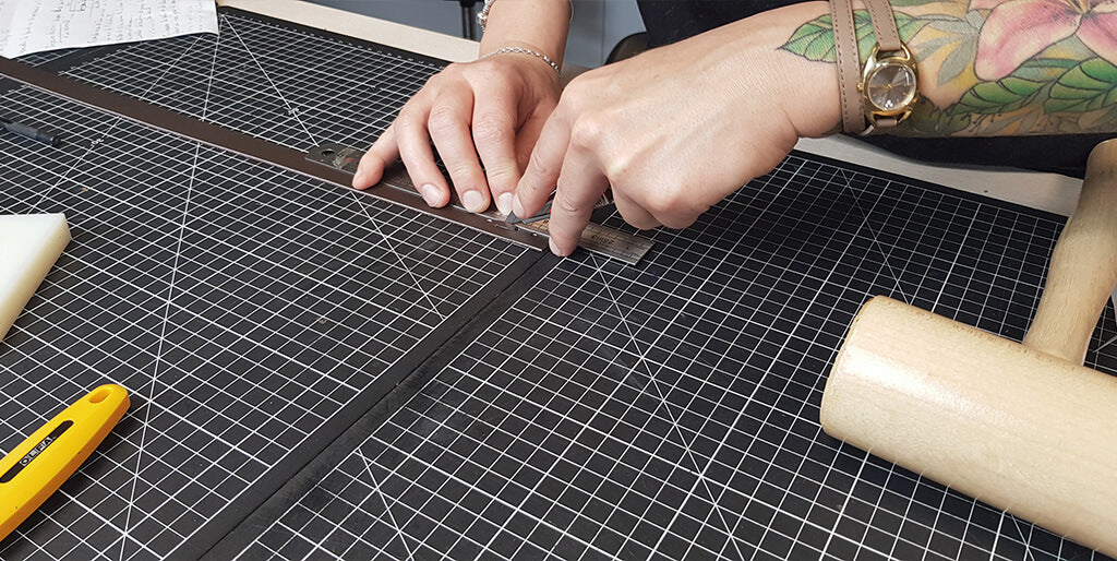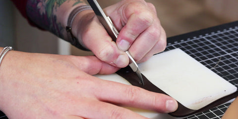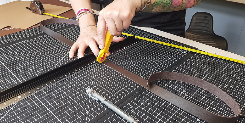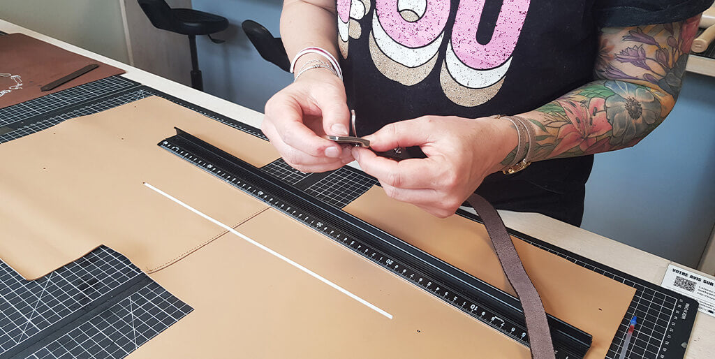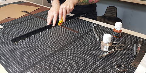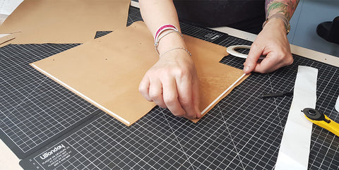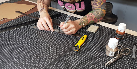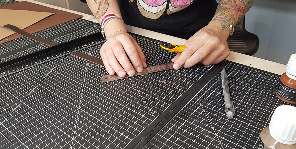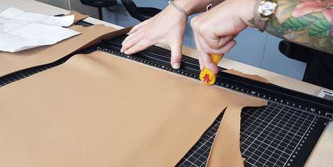Découper les différentes pièces de cuir et de doublure avec un cutter ou une paire de ciseaux.