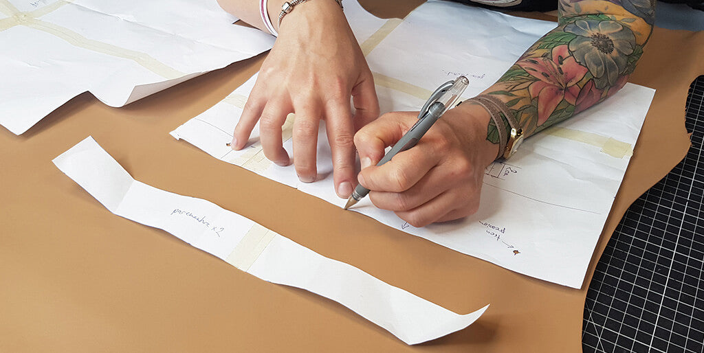À l'aide d'un crayon d'argent, tracer les pièces du patron sur le cuir et la doublure. Marquer aussi la position des différents trous.