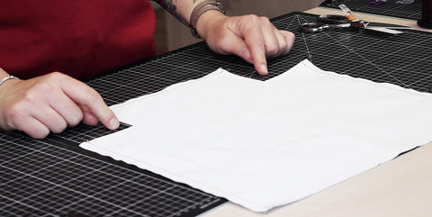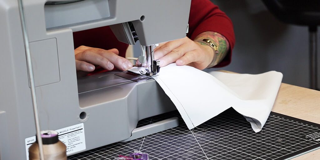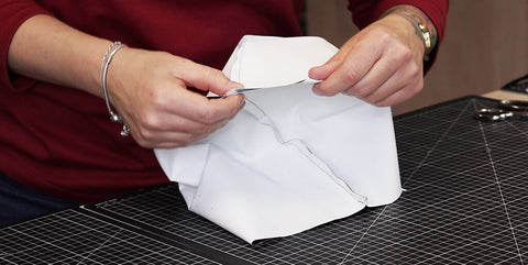 Retourner le sac et coudre les deux coins endroit contre endroit.