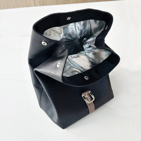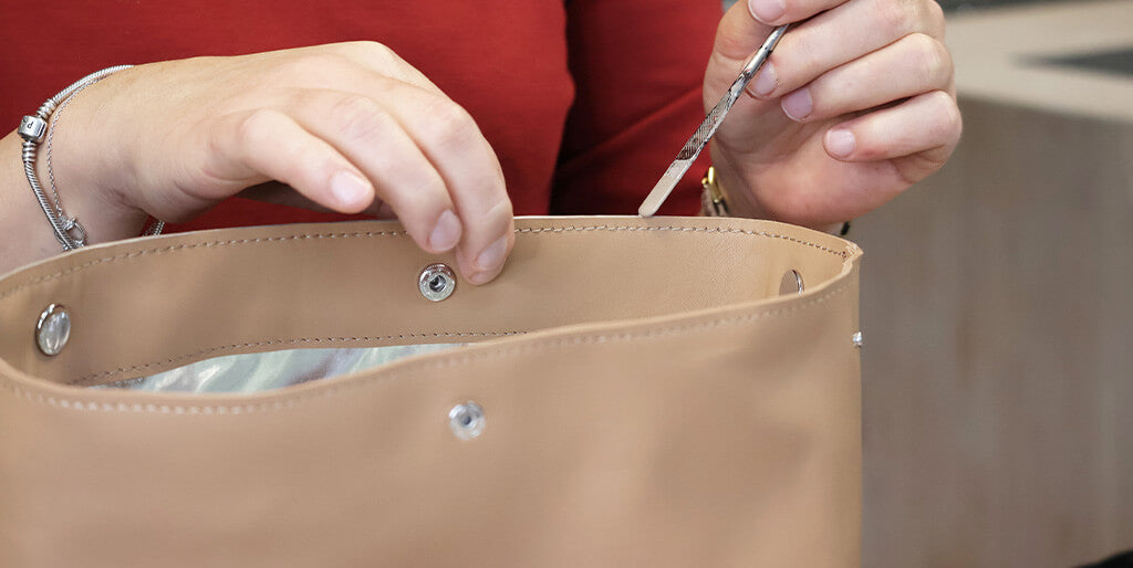 - Pour le bouton de milieu, fixer les deux parties vers l'intérieur du sac.