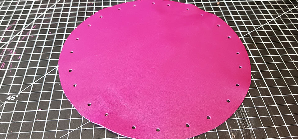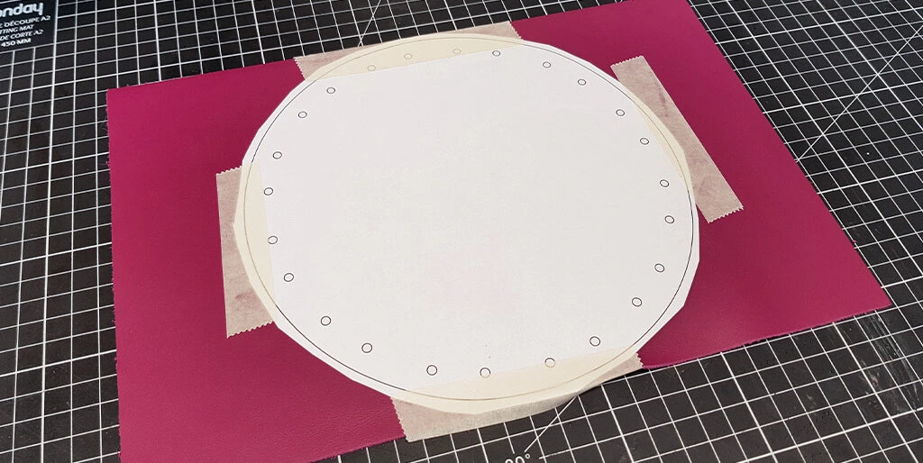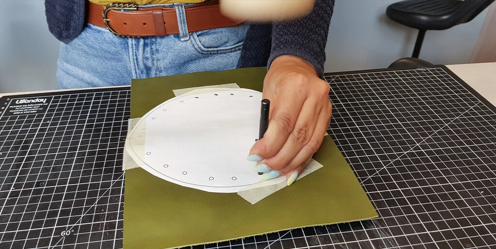 - Markieren Sie die Nähte mit einer Lochzange rund um die Tasche.