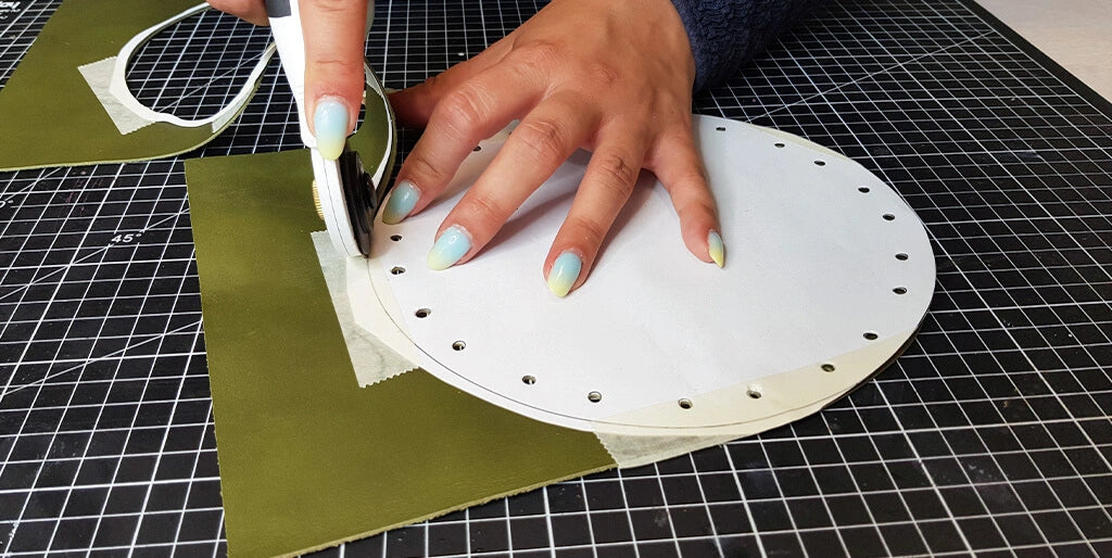 Mit einem Rollschneider oder einer guten Schere: Schneiden Sie die Geldbörse aus dem Leder (für eine perfekte Rundung empfehlen wir die Verwendung eines Rollschneiders).