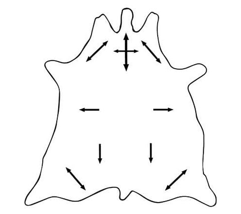 Hier sind die verschiedenen Teile eines Kuhfells: