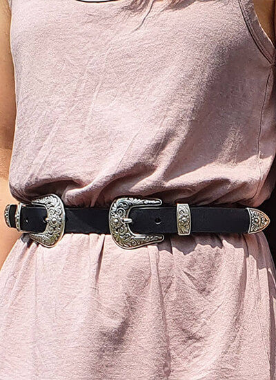 Der mexikanische Gürtel, auch Westerngürtel genannt, ist ein Gürtel mit passender Dornschließe, Gürtelschlaufe und Metallendkappe.