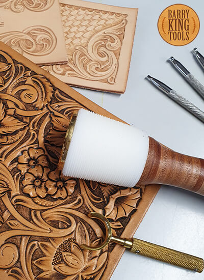 Premiumstempel von Barry King Tool zum Hämmern oder Prägen von pflanzlich gegerbtem Leder. Barry King Tools ist ein Premiumhersteller von Werkzeugen zur Lederverarbeitung.