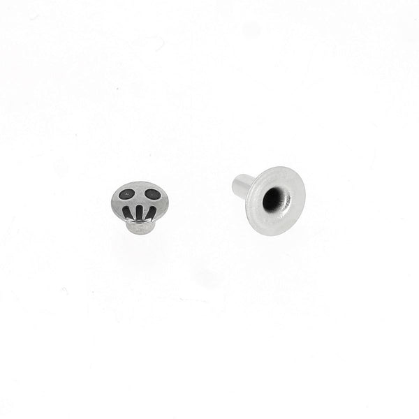 Entdecken Sie unsere Auswahl an dekorativen Nieten für Leder : Pyramidennieten für einen rockigen Stil, Strassnieten für ein elegantes und glänzendes Finish, gewölbte Nieten für einen Vintage-Effekt, Smiley-Nieten für eine verspielte und originelle Note und viele andere Muster zum Personalisieren Ihrer Lederwarenkreationen.