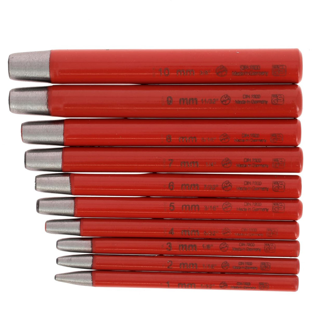 Set mit 10 runden Stanzmessern - ermöglicht das Stanzen von Löchern mit einem Durchmesser von 1 bis 10 mm . Gerader Ärmel