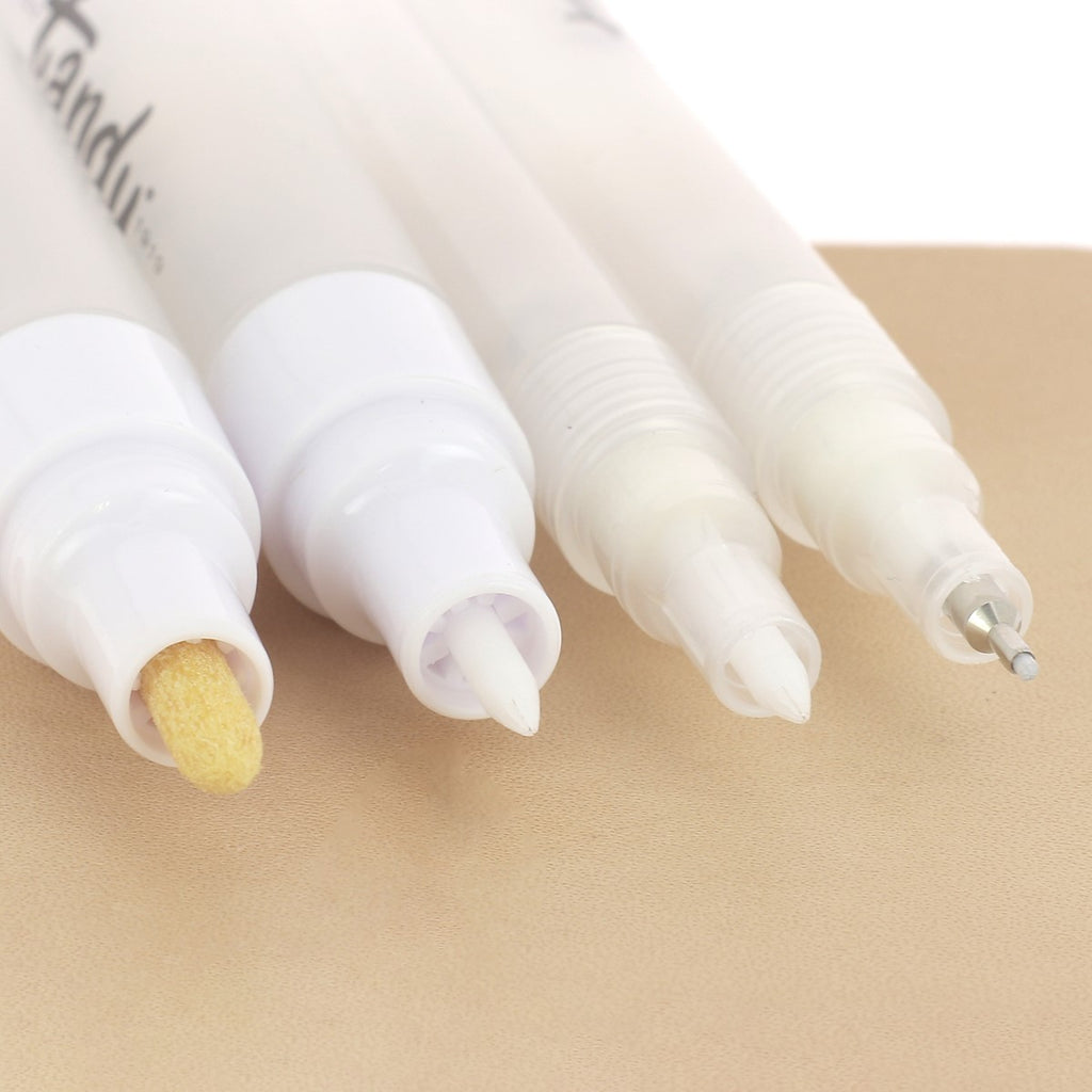 Mit diesen Stiften können Sie die Farbe präzise auf Ihr Leder auftragen . Sie eignen sich perfekt zum Färben kleiner Bereiche oder zum Hinzufügen von Details zu Ihrer Kreation aus pflanzlich gegerbtem Leder.