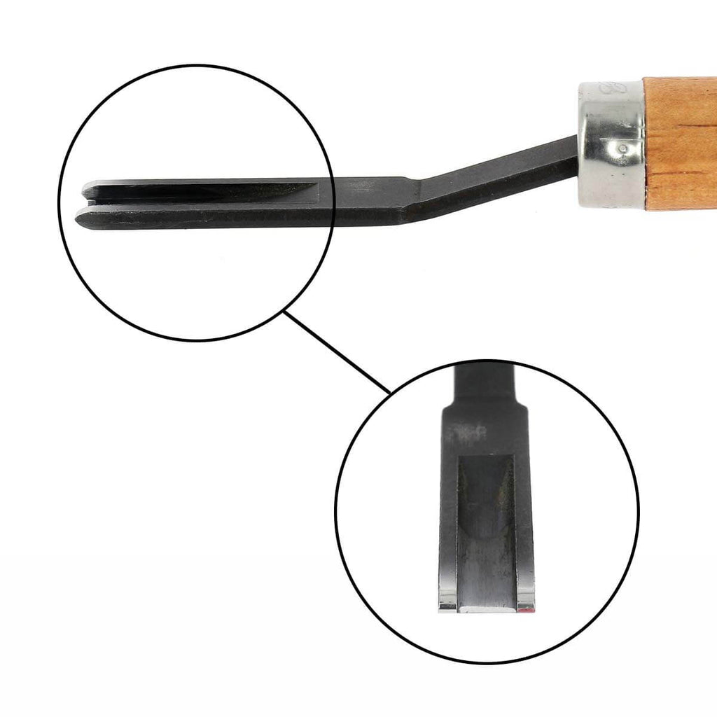 Mit dem französischen Lederschneider können Sie Ihr Leder trimmen : die Rinde des Leders dünner machen. Es reduziert die Dicke des Leders für die Anbringung von Accessoires ( Nieten, Druckknöpfe etc. ) oder zum Nähen.Dank der polierten Stahlklinge , die über das Leder gleitet, ist dieses Werkzeug sehr einfach zu verwenden .
