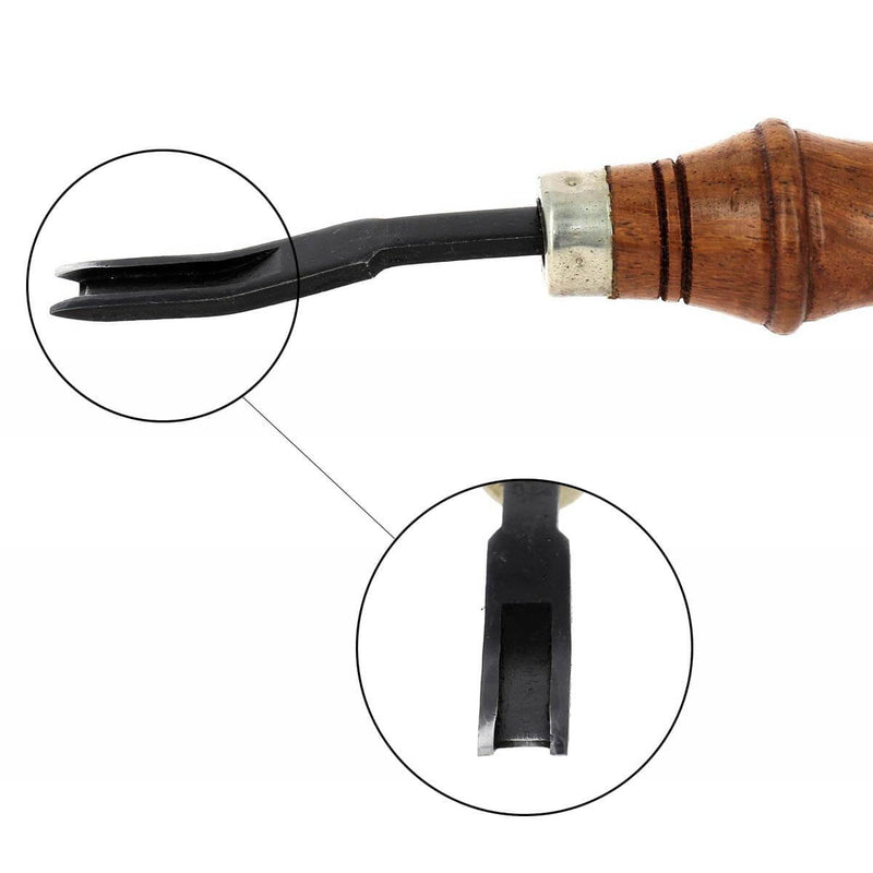 Mit dem französischen Lederschneider können Sie Ihr Leder trimmen : die Rinde des Leders dünner machen. Es reduziert die Dicke des Leders für die Anbringung von Accessoires ( Nieten, Druckknöpfe etc. ) oder zum Nähen.Dank der polierten Stahlklinge , die über das Leder gleitet, ist dieses Werkzeug sehr einfach zu verwenden .