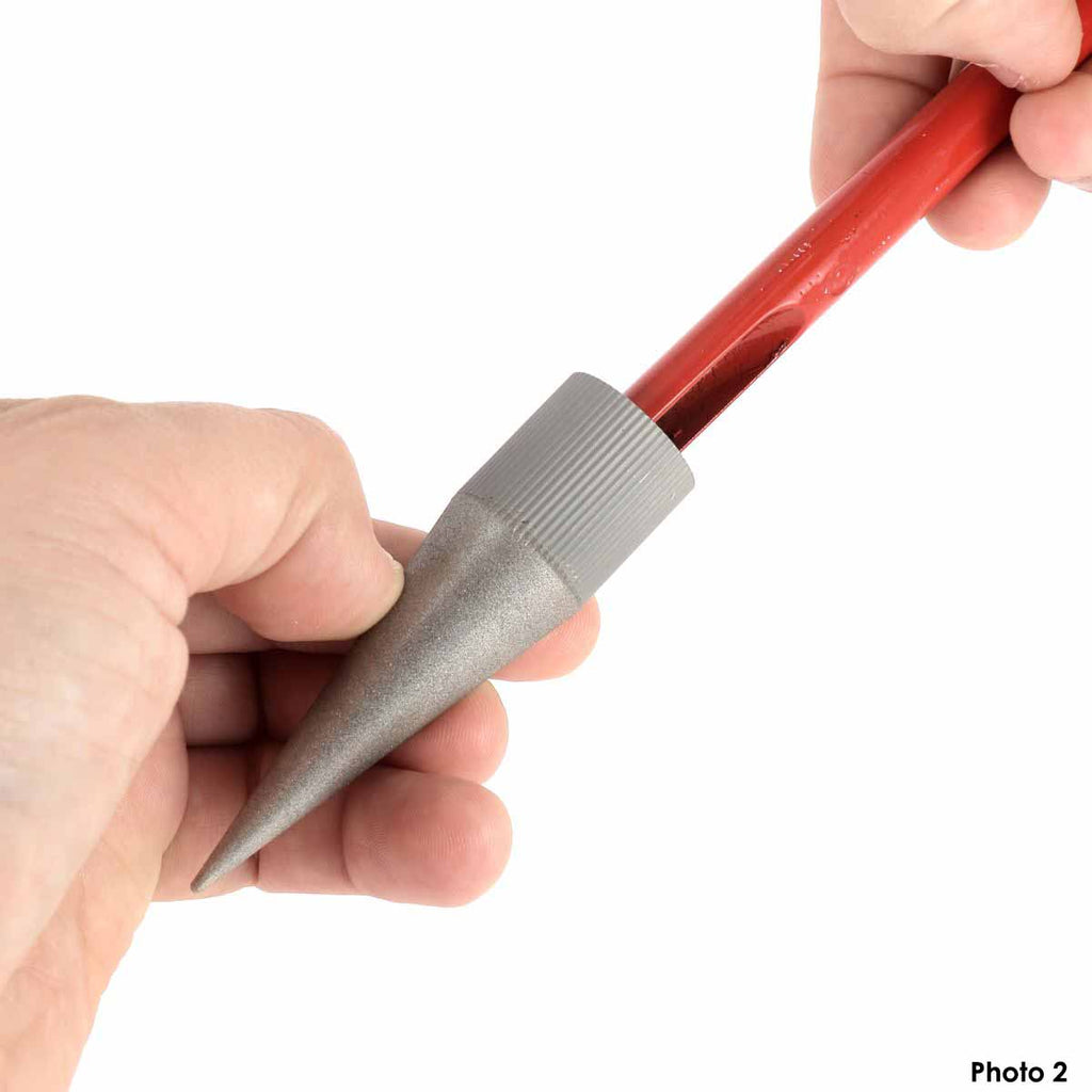 - Um einen Stempel zu schärfen, stecken Sie ihn einfach in den Spitzer und drehen Sie ihn (siehe Foto 2).