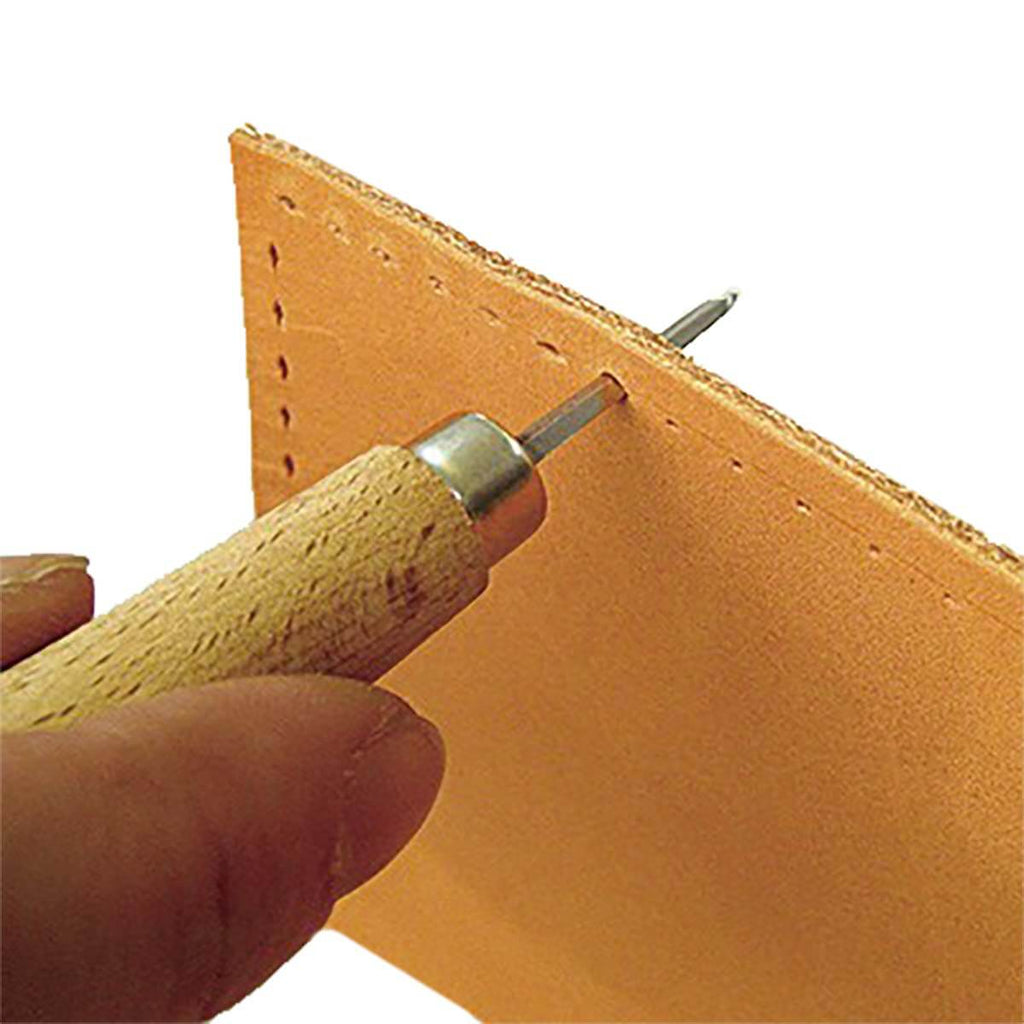 Diese Ahle hat eine rautenförmige Klinge zum Durchstechen von Leder und Anfertigen von Sattelstichen. Die Klinge aus gehärtetem Stahl wird ordnungsgemäß geschärft geliefert. Das Werkzeug ist gebrauchsfertig für dünne und weiche Leder. Bei dickem, festem Leder kann ein zusätzliches Schärfen erforderlich sein.