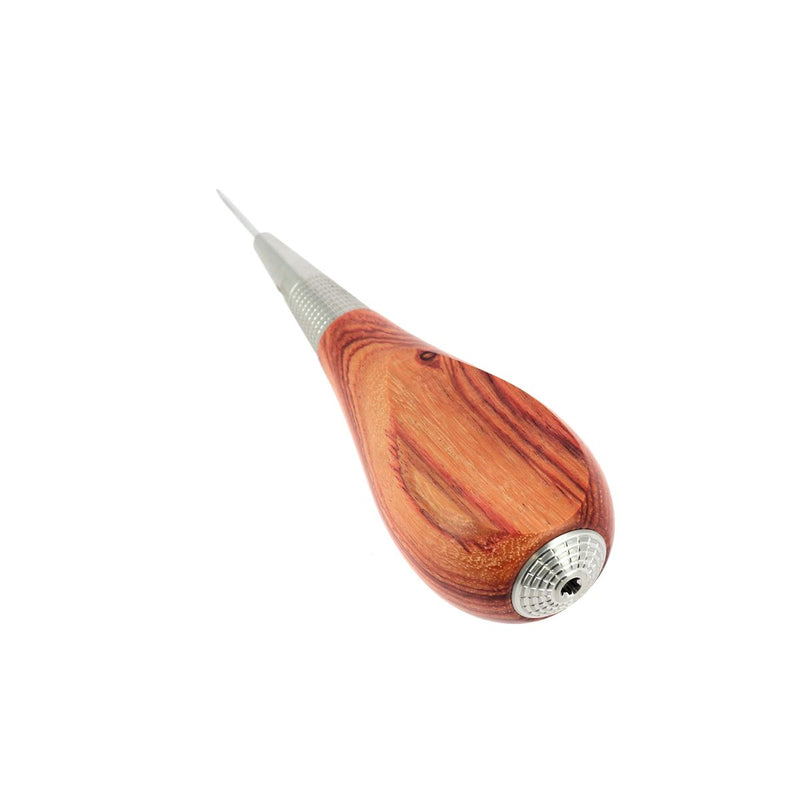 Die Form der Klinge ist perfekt durchdacht, damit sie wie Butter in das Leder eindringt, aber auch wieder herauskommt, ohne dass man die kleine Blockierstelle spürt, die für gewöhnliche Ahlen typisch ist.