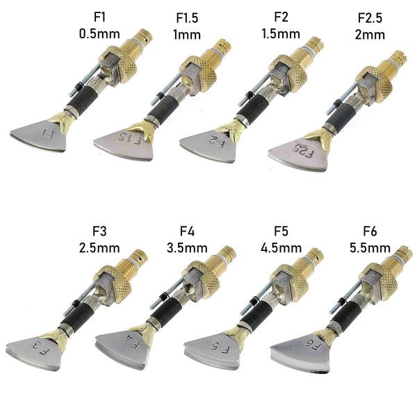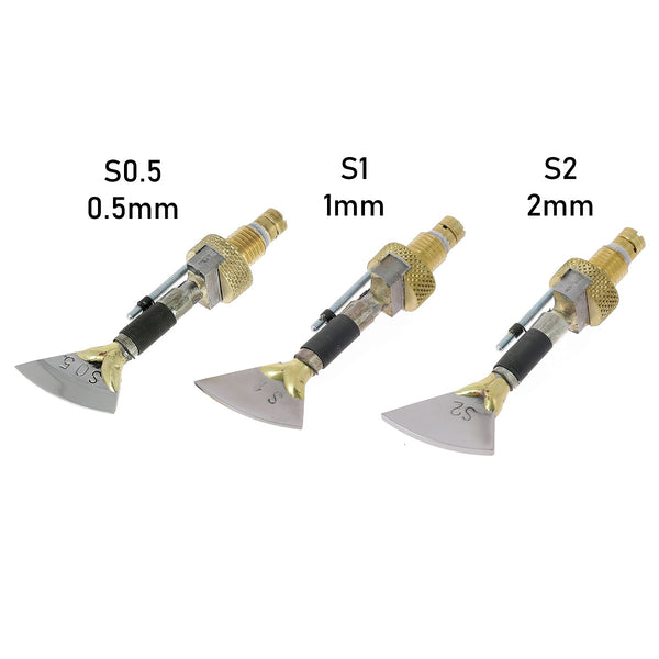 Mit diesem Gerät sind Temperaturen zwischen 40 und 400° möglich. Die Einstellung der Heizleistung erfolgt über ein Potentiometer mit einer Skala von 1 bis 10, so dass Sie die für Ihren Bedarf optimale Temperatur bestimmen können (mehr oder weniger ausgeprägte Markierung). Wir empfehlen, zur Anpassung der Einstellungen immer Tests an Lederresten durchzuführen.