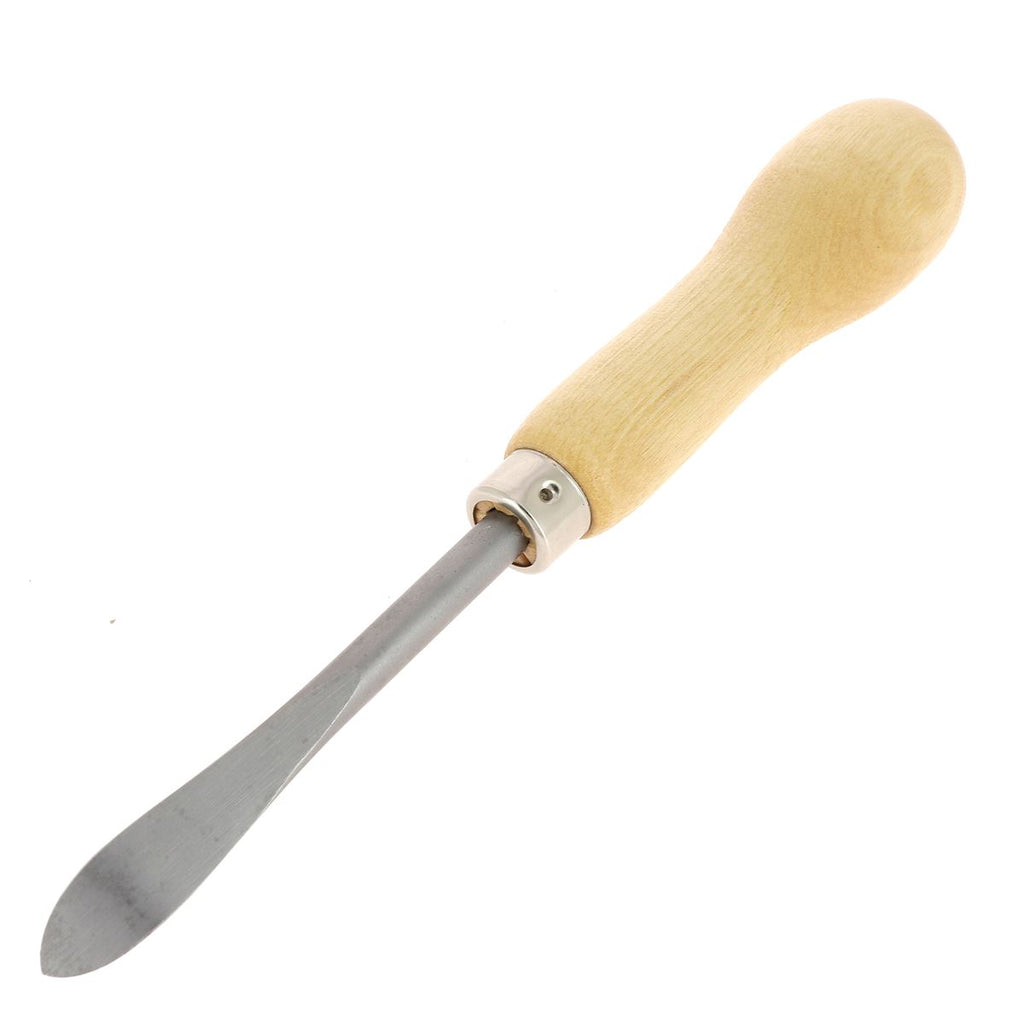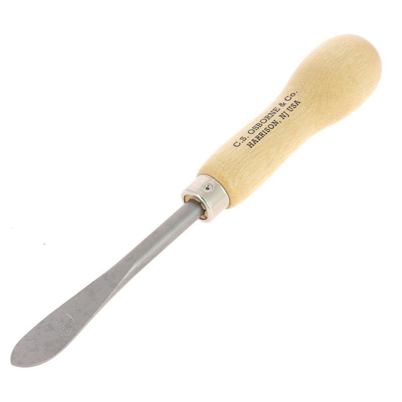 Dieser Heftklammerentferner hat eine spatelförmige Stahlklinge und einen Holzgriff. Es erfordert mehr Fingerspitzengefühl im Vergleich zum Brecheisen und ermöglicht ein schonenderes Entfernen von Klammern, ohne den Sitz oder Sessel, dessen Polsterung entfernt werden soll, zu beschädigen.