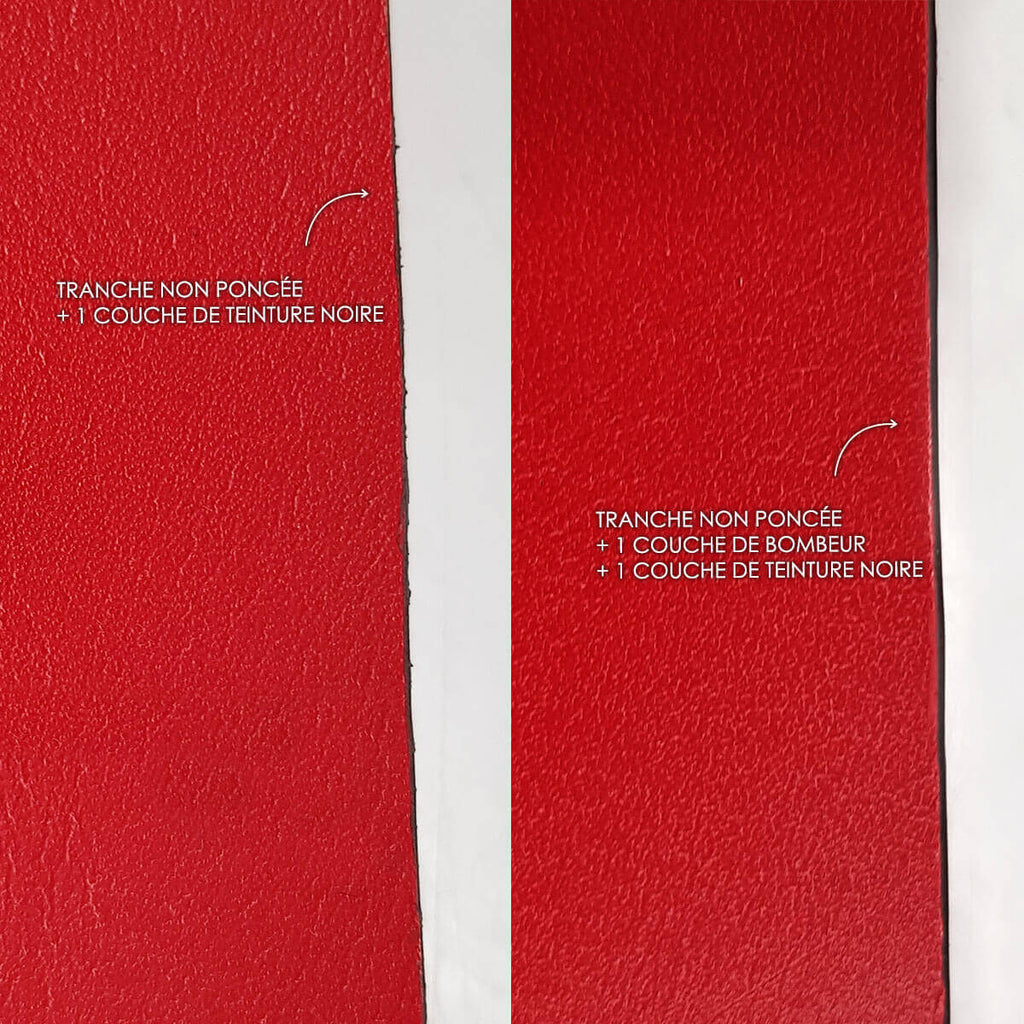 - Sprühen Sie das Mittel großzügig auf die Kante des Leders. Verwenden Sie dazu eine Dose mit Präzisionsdüse (Ref. WA085) oder eine runde Ahle.
