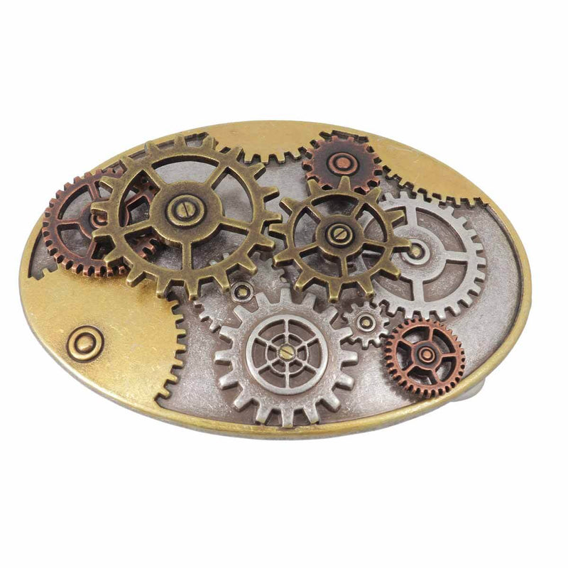 Ovale Gürtelschnalle im STEAMPUNK-Stil für ein Lederband mit einer Breite von bis zu 44 mm .