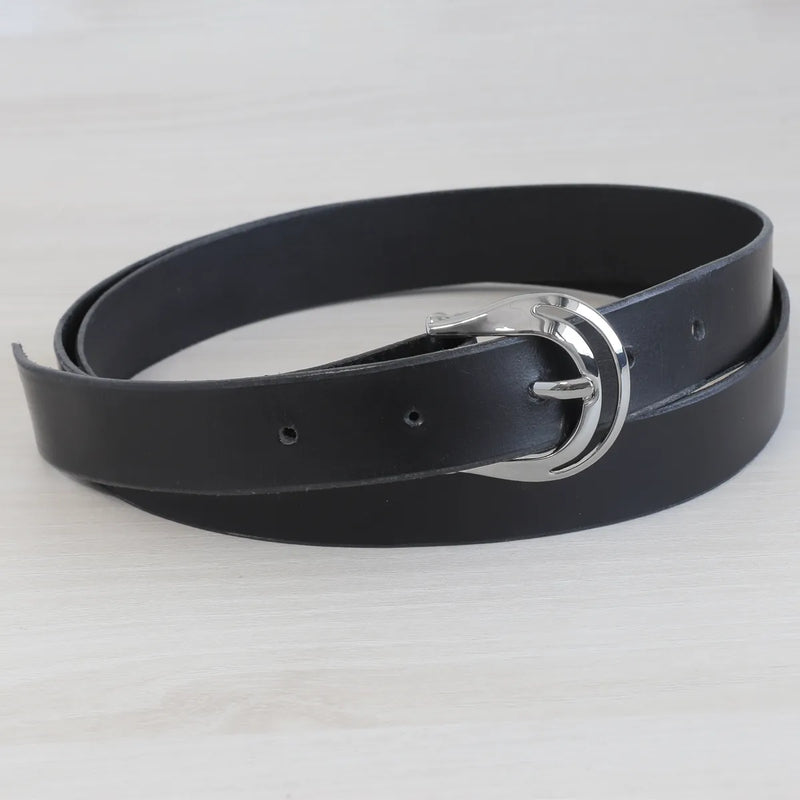 Mit ihrer abgerundeten Form und dem durchbrochenen Ende eignet sich diese originelle Schnalle ideal für die Herstellung eines modernen und femininen Ledergürtels.