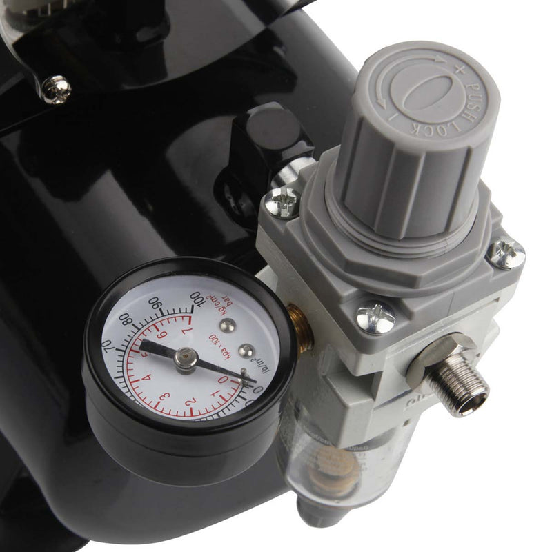 Dieser leistungsstarke 1-Kolben -Kompressor mit Doppellüfter ermöglicht Ihnen den Einsatz einer Airbrush.