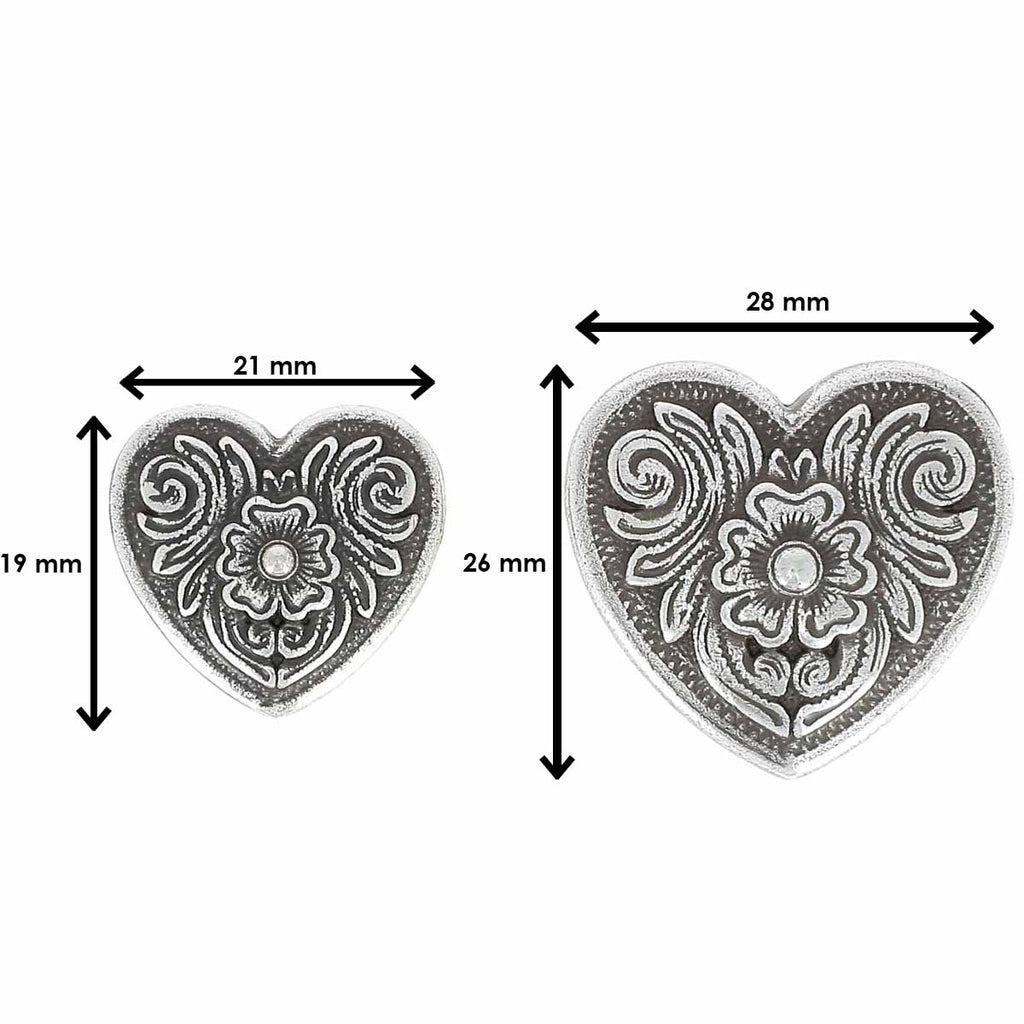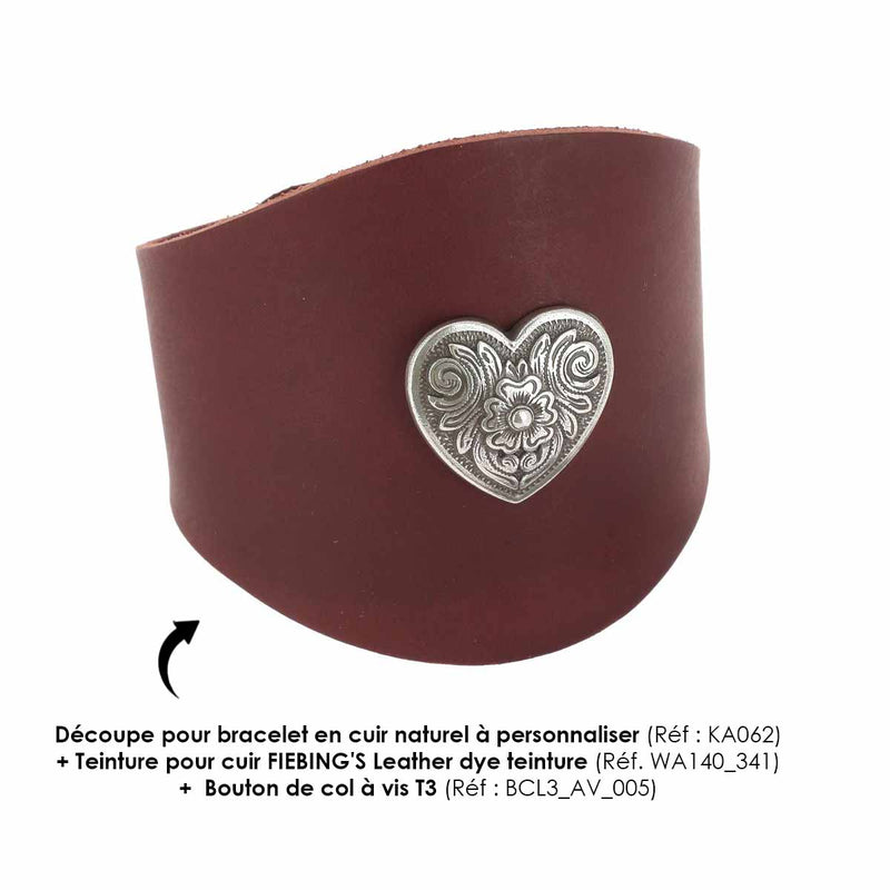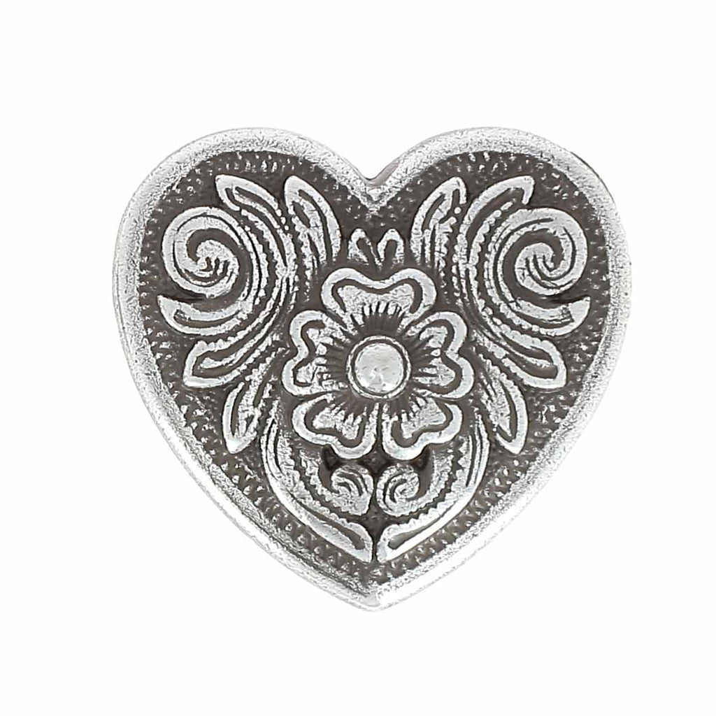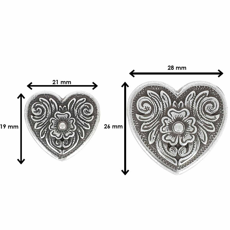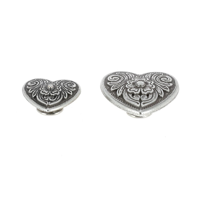 Dieser herzförmige Concho ist mit einem eleganten Blumendekor verziert. Es eignet sich perfekt, um Ihrer Lederkreation eine einzigartige und romantische Note zu verleihen: Gürtel, Tasche, Schlüsselanhänger, Armband …