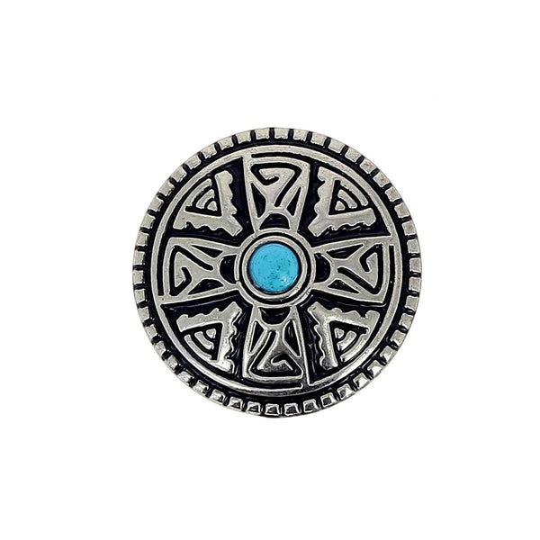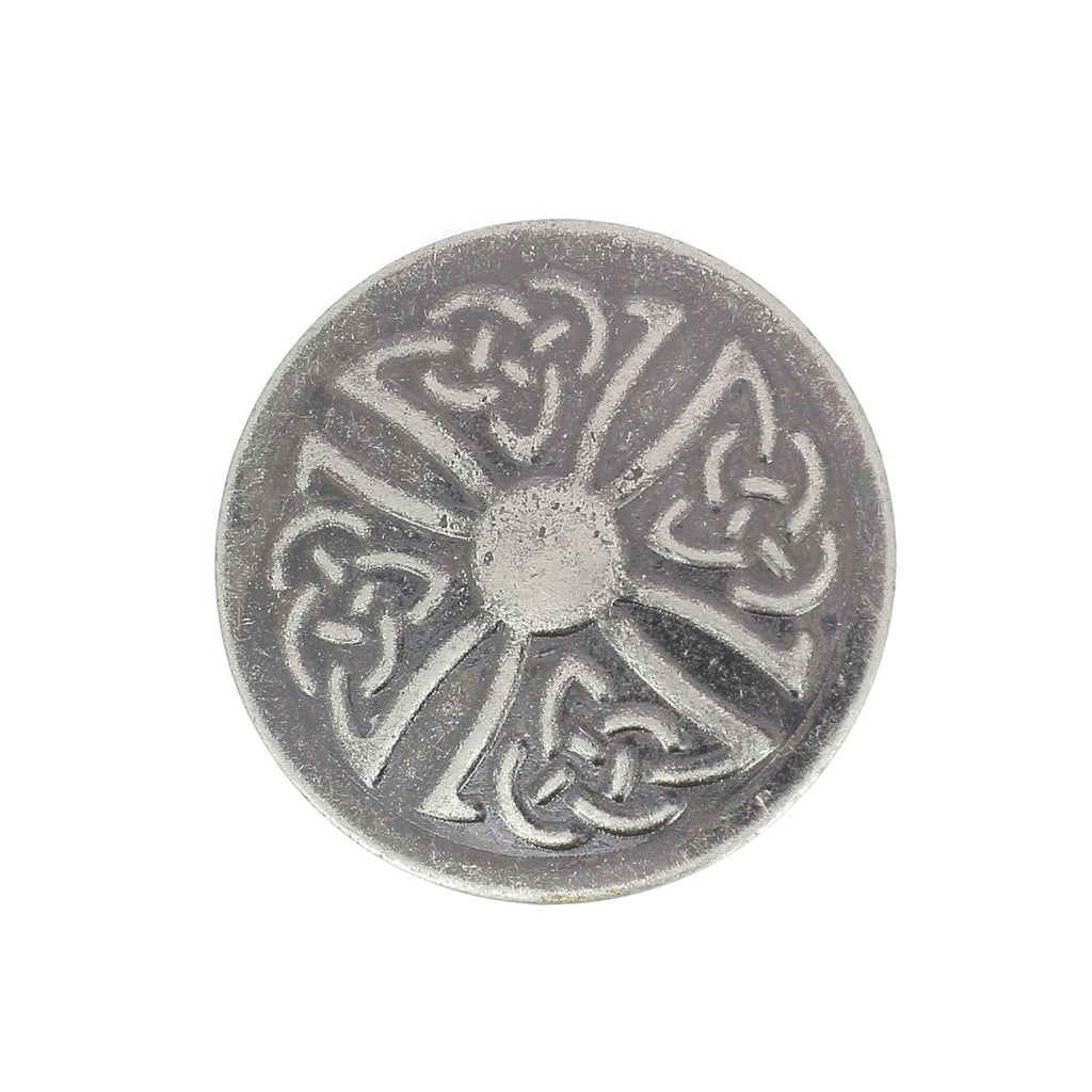 Personalisieren Sie Ihre Kreationen mit diesem runden Nieten-Concho aus gestanztem Stahl mit gealtertem Silber-Finish, der ein keltisches Kreuz darstellt.